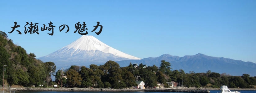 穏やかな海と岬越しに見える富士山。